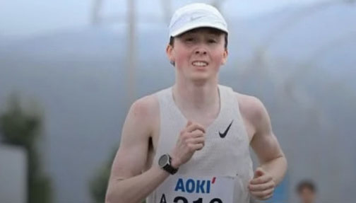 อีธาน ชูลีย์, อายุ 27 ปี (สมาคมกรีฑาโตเกียว) นักวิ่งสมัครเล่นชาวอเมริกัน เข้าเส้นชัยอันดับ 14 เวลา 2:07:14 ชั่วโมง (PB)